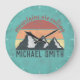 Vintage pastels mountains are calling monogram personalizable design. Drawing of a snowy mountains with a pastel colour lines in yellow, orange and red representing the sunset sky. Above the circle sky is a saying mountains are calling and beneath the mountains there is a monogram where you can add your name. Perfect for nature and hiking enthusiasts.