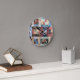A beautiful patchwork quilt clock. Features a fabric scrap patchwork quilt in blues and browns.