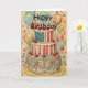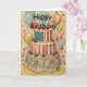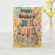 Celebrate in star-spangled style with this charming vintage-inspired birthday card featuring a whimsical three-tiered Americana cake adorned with red, white, and blue stripes, stars, festive cherries, and colorful balloons. Perfect for patriotic birthdays, July celebrations, or anyone who loves retro nostalgia with a humorous twist. The satirical interior text playfully pokes fun at aging and indulgence while the ornate Victorian-style decorations capture mid-century greeting card charm. Ideal for friends, family, or coworkers who appreciate witty humor and classic American aesthetics. Generativecontent
