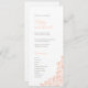 Elegant, vintage, chic wedding day programme. Delicate rose lace corner detail in pretty rose peach. Customise with your names in rose peach script and your wedding information in chic dark sage lettering. Designed to match our Vintage Floral Rose Lace Wedding Collection.