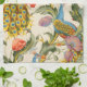 Vintage Peacock and poppies illustrations Tea Towel