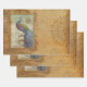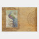This unique and beautiful design showcases a vintage-inspired peacock bird with a tan background. There are many elements such as a round compass-like design, scrollwork, and cursive writing. Perfect for decoupage, paper crafts, or gift wrapping.