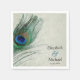 A formal peacock wedding paper napkin. Featuring a peacock feather design on a vintage tan damask pattern. Elegant and classy. Easily personalise for your event!