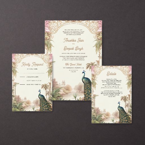 Vintage Peacock Garden Indian Wedding Details Enclosure Card