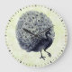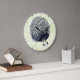 Vintage blue tint peacock illustration with clock face overlay and pale background
