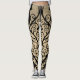 Leggings with image of a vintage peacock postcard in colours of black and sepia.