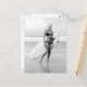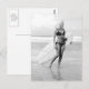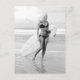---- Vintage black and white photo postcard ----Young woman posing in a bikini with a surfboard - Saint Augustine, Florida 1970