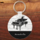 This simple and elegant personalized keychain features your name on a black block and a vintage piano with vintage music scores on a white block. Perfect for pianists, piano instructors, music teachers, musicians, and music lovers. Change the background color and personalize it for your needs. You can find matching products at my store.
