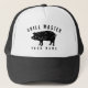 Vintage pig logo grill master hat for bbq king. Cool barbeque party gear for men. Personalizable with name or custom quote. Masculine black and white design for chef cook dad, husband, father, grandpa, grandfather, brother, son, brother, friend, boss, restaurant owner, kitchen staff, food truck worker, colleague, co worker, retired person, friend, family member etc. Distressed pork logo for ham, bacon and meat lover.
