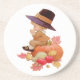 Vintage Pilgrim Boy Praying on Pumpkin Coaster