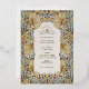 Embrace timeless elegance with our wedding invitations featuring the renowned Pimpernel pattern by William Morris, masterfully rendered in vintage hues of dusty pink, faded blue, and accented with gold foil. William Morris, a figurehead of the Arts and Crafts Movement, believed in the beauty of handcrafted designs and the harmonious interaction of colour and pattern. His iconic Pimpernel pattern, chraacterised by its entwining foliage and delicate florals, has endured through the decades, embodying an aesthetic that celebrates the natural world and intricate craftsmanship. These invitations not only pay homage to a bygone era but also resonate with modern sensibilities, making them a perfect choice for couples seeking a blend of traditional artistry and contemporary elegance for their wedding celebration. The soft colour palette evokes a sense of vintage charm, while the gold foil accents add a touch of modern sophistication. Invite your loved ones to partake in your union with a piece of art history that complements the profound essence of matrimonial bonds.
