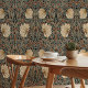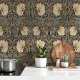 Bring a touch of classic sophistication to your home with this stunning vintage wallpaper, inspired by the intricate designs of William Morris. The elegant pattern features majestic pimpernel flowers and delicate blossoms intertwined with lush green leaves and vines. The colour palette includes soft pastel greens, warm apricots, and muted gold tones, all beautifully contrasted against a deep charcoal background. This exquisite wallpaper is perfect for adding a sense of timeless elegance and natural beauty to any room, seamlessly blending traditional charm with modern style.