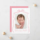 Celebrate your little one's arrival with our elegant Vintage Pink Bow birth announcement. Showcase your newborn's photo framed by a charming pink bow, with your baby’s name in a lovely handwritten pink script. Below, you can add birth details like weight, length, and date. The back offers space for an extra photo and a personalised message to loved ones. This customisable keepsake is the perfect way to announce your newest family member with style and grace!