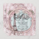 Beautiful pink pearls, lace and Eiffel Tower Paris baby shower invitation. This elegant teal blue and pink vintage Paris baby shower invitation is easily customised for your event.