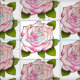 A line drawing of a pretty vintage rose with lots of pink petals on a white background. Click on "Customise" to change the image size and/or tile pattern; if desired.