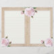 Page for journals and scrapbooks. Features lined pages with vintage pink and white rose illustrations on an aged paper background. Design is repeated on the back of the paper.
