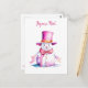 Watercolor pink vintage Snowman with Retro vibes personalised Christmas card. Joyeux Noël.