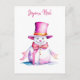 Vintage Pink Snowman Retro Personalised Christmas Postcard