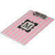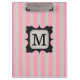 Vintage Pink Stripes Pattern Black Custom Monogram Clipboard