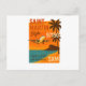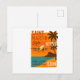 Retro postcard of Saint-Martin (97150 - SXM), with plane approaching, turquoise beach, palm tree and orange sunset. Unique vintage style inspired by classic posters. Perfect as a souvenir of the West Indies, a traveler's gift or framed mural decoration. High quality paper, clean printing.