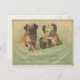 Send your cute vintage puppy greetings with this old scrap book trade card from 1890. Three sweet little dogs looking happy while making your special friends enjoy your postcard greetings. We are happy to help you out if you need any changes to the layout such as colours and size and other additions. Just contact us and we do the rest for your personal satisfaction.