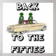 Back to the fifties. Vintage poster with old gas pumps and classic car.  Very retro gift idea.