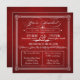 This beautifully deep, rich velvety red square wedding invitation with light silver text has a vintage, old fashioned hollywood feel with old-timey letter design, including elaborate script elements, a decorative banner, stars and a swirly ampersand. The fancy invitation is inspired by both vintage design and stylish posters. The text reads: "You're Invited to the wedding of [customisable name] & [customisable name] [customisable date] [customisable time]. Please Join Us for an Unforgettable Celebration". Further personalise the invitation with the wedding ceremony and reception information and address, each in their own box with dotted border.
