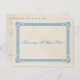 This red, white and blue wedding response postcard, with a pale cream background, has a vintage, old fashioned feel with old-timey letter design, including elaborate script elements, a decorative banner, stars and a swirly ampersand. The fancy invitation is inspired by both vintage design and stylish posters. The text reads: "Répondez S'il Vous Plaît" on the front and "The Favour of a Reply is Requested by" followed by your personal text on the back.