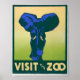 Cool Vintage Poster Featuring Big Blue elephant on yellow and green background. Visit the zoo