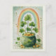 A postcard with a seasonal St. Patrick's Day image. Faded grunge style paper. A green pot of gold with coins