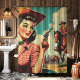 Vintage Pulp Cowgirl Illustration Shower Curtain