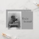 Personalised puppy photo birthday party invitations- Vintage black and white photo shows two tiny adorable puppies- one is in an old bathing washtub. The other puppy actually looks like it is washing the other pup with a washcloth! "You're Invited" is printed on the front of these cute birthday party invitations or announcements with coordinating grey background. Enter your own personal information on the other side. Change the text colour, font style, or wording if you like. The current wording is for a 4th birthday party invitation. Also unique design invitation for dog lovers, vintage photo buffs, animal charity or events, birthdays, and most any special occasion or holiday.