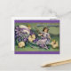 This lovely vintage style postcard features a lovely girl playing with chicks. A beautiful purple colour is the highlight of the design.