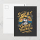 This vintage-style illustration features a confident rabbit in a fedora standing before a retro sunset with bold motivational text that reads “Sweat Today Shine Tomorrow.” The design blends classic workout vibes with a playful twist, highlighted by warm yellow tones and subtle gear accents. Perfect for fitness lovers, retro art fans, and anyone who enjoys unique motivational animal themes.