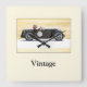 Remembering our automotive past. A black vintage race car at speed on a race track. Vintage text can be changed or removed.