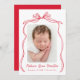 Celebrate your little one's arrival with our elegant Vintage Red Bow birth announcement. Showcase your newborn's photo framed by a charming red bow, with your baby’s name in a lovely handwritten red script. Below, you can add birth details like weight, length, and date. The back offers space for an extra photo and a personalised message to loved ones. This customisable keepsake is the perfect way to announce your newest family member with style and grace!