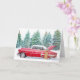 This old red car and sled give the vintage feeling of a Christmas of gone by days. Taking a sledding adventure for the holidays was such fun, especially with a gentle snowfall. On the backside of the car is a little boy child pulling his sled. While on the inside is an old Merry Christmas greeting.