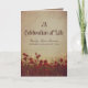 Folded funeral program in a vintage design featuring red poppies with a touch of sepia tones. On the cover, your loved one's name and years living. Inside you can write the obituary and program on paper printed to look antique and foxed. On the back you can add acknowledgements.