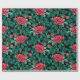 Vintage watercolor drawing red roses pattern with emerald leaves on a black background.