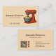 A warm-toned layout featuring a red stand mixer illustration, perfect for bakers wanting a cheerful and professional identity with a handmade feel.