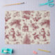 A classic red toile Christmas pattern tissue paper beautifully illustrated with holly leaves, berries, snowmen, pine branches, wrapped gifts, and evergreen trees on a cream background. The intricate linework captures the warmth and charm of Victorian-era holiday art. This elegant and nostalgic pattern brings timeless festive cheer to any project, combining nature-inspired motifs with traditional Christmas imagery.