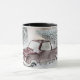 Vintage Drawing of a Red Truck with Christmas Tree in a Winter Scenery