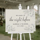 Welcome your guests with charm using this vintage-style rehearsal dinner sign. Featuring romantic hand-drawn florals in soft silver-grey on an ivory background, this elegant sign sets the tone for an intimate evening before the big day. Personalise with names and date.