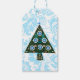 My original artwork consisting of my original digital design, reworking a vintage textile and shaped into a retro style Christmas tree in green and blue tones. Then I placed it on another vintage textile background in an aqua blue colour tone for a unique one-of-a-kind design. The back of the tag is in a complementary light blue tone for your writing ease and pleasure. This set of 10 gift tags is printed on heavy-weight paper and each tag is 3.5 inches by 2 inches. The tag has blue and white twine with it, but you may change that colour as you please. This fun tag will make your gifts stand out.