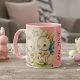 This adorable two-toned vintage Easter coffee mug features a cute bunny couple carrying colourful Easter Eggs for delivery with the words "Happy Easter". The vintage pink and blue colours are perfect for the Easter season. Personalise by adding your name or the name of someone special.