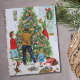 Vintage Retro Family Decorating Christmas Tree Holdiay Card.