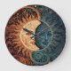 Enjoy this mesmerising round wall clock of a merging sun and moon with an intricate and vibrant design that captures the essence of cosmic harmony. Get lost in the blue, orange, and yellow swirling details as the sun and moon come together in perfect balance—a stunning piece of art, that adds a touch of colour and creativity to any room.