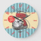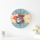 Cool kitchen clock featuring a vintage or retro red stand mixer and custom coloured stripes, background colour and number colour, personalised with your name.