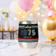 .: 1975- This design is bold and BRIGHT and features primary colours and white popping against a black background. You may change any of the text including the year, name and age, or you may put in a custom statement as well. Retro stripes in bright primary colours are too fun to not have at the next milestone birthday you plan.