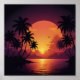 Vintage retro wave sunset with palm trees poster